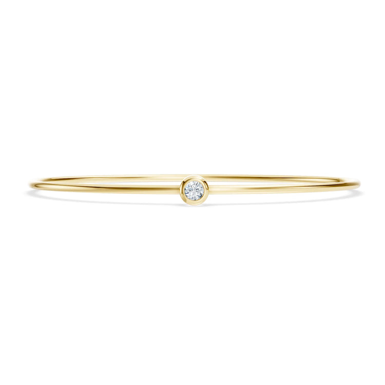 Der „Linéa“ Armreif verkörpert die Kunst der Reduktion – ein feiner, geschlossener Reif aus 585er (14K) Gelbgold, veredelt mit einem zentral gefassten Lab-Diamanten. Minimalistisch im Design, maximal in Ausdruck und Anmut.