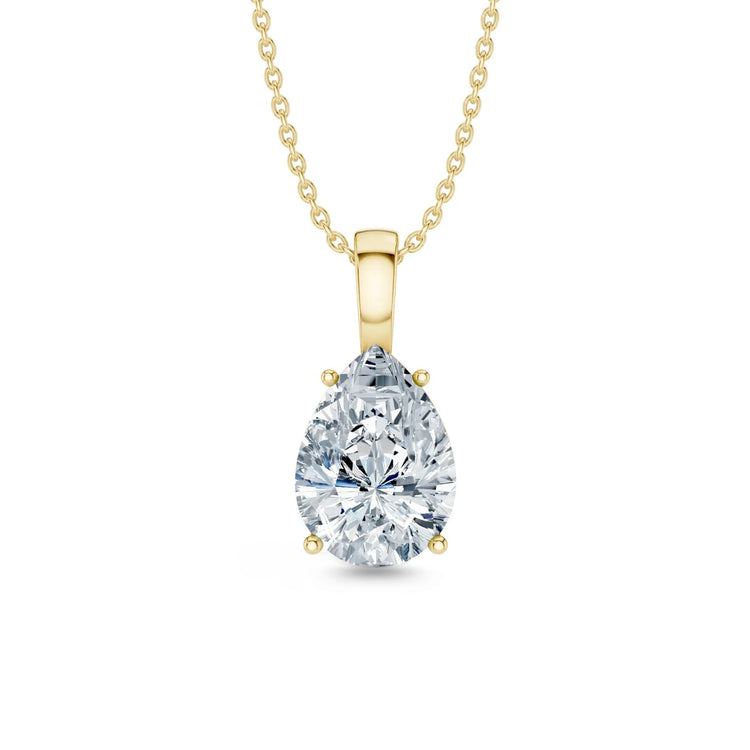 Diese Halskette verkörpert pure Sinnlichkeit in ihrer klarsten Form. Im Zentrum steht ein tropfenförmig geschliffener Labordiamant – der Pear-Cut vereint die klassische Rundheit mit einem markanten Auslauf, der das Licht in jeder Bewegung fängt. Eingefasst in eine filigrane Krappenfassung aus 14 Karat (585er) Gelbgold, entfaltet der Solitär seine volle Wirkung: dezent, aber unverkennbar präsent.