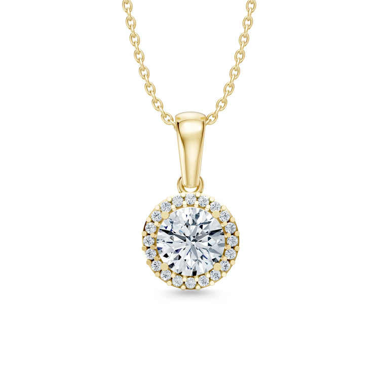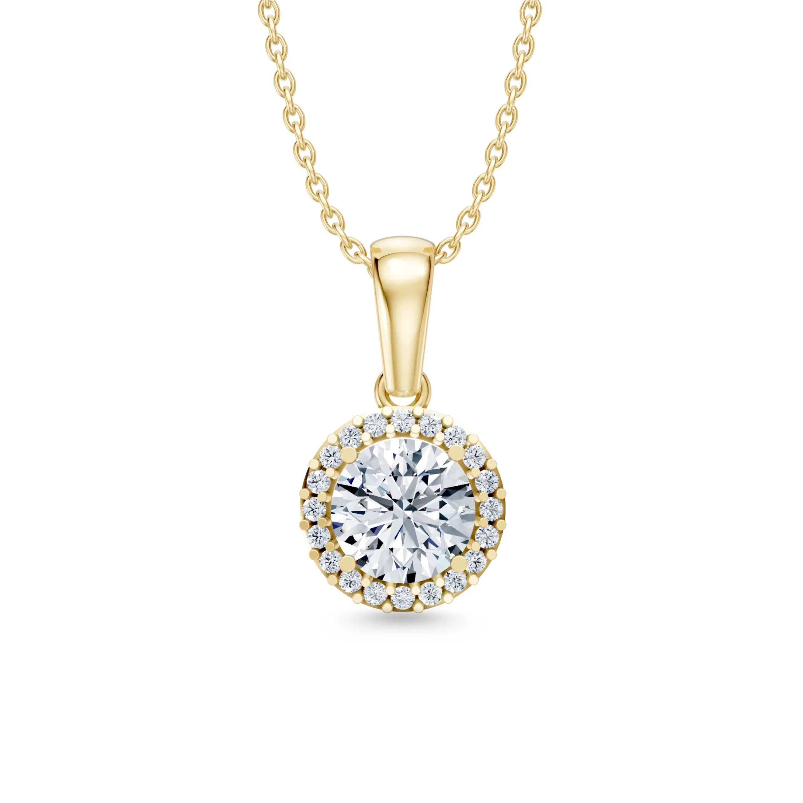 Diese Halo-Halskette steht für Glanz, Anmut und vollendete Balance. Im Zentrum: ein brillant geschliffener Labordiamant, eingefasst in einen funkelnden Rahmen aus kleineren Diamanten – ein Lichtspiel in vollendeter Harmonie, eingefasst in edlem 14 Karat (585er) Gelbgold.