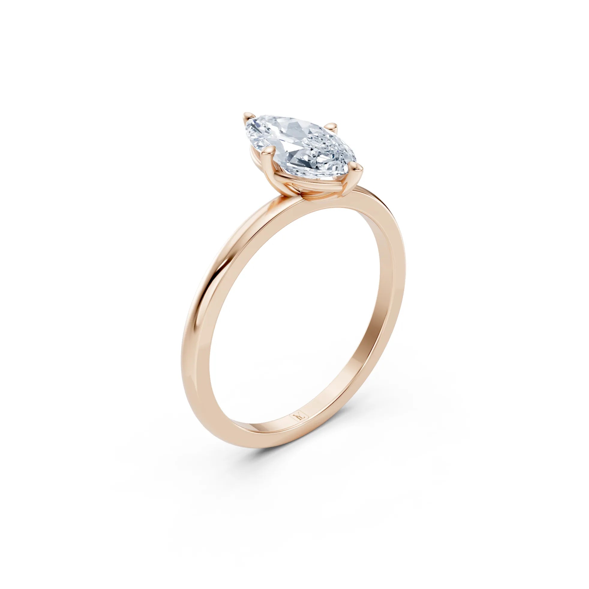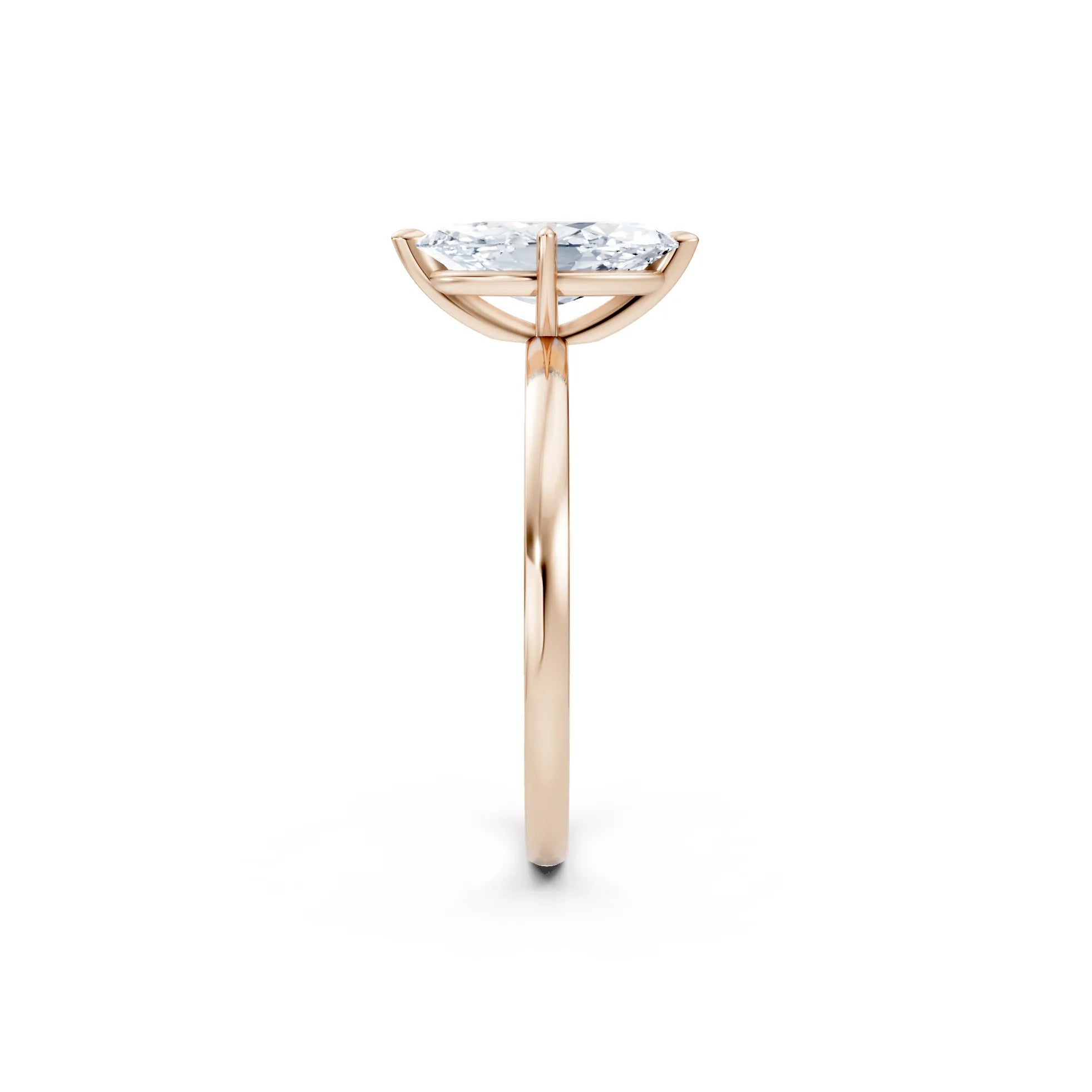 Gefertigt aus feinstem 750er (18K) Roségold, wird der Lab Grown Diamant von einer zarten 4-Krappen-Fassung gehalten, die seine außergewöhnliche Silhouette betont.Die schlanke, polierte Ringschiene sorgt für ein angenehmes Tragegefühl und hebt das minimalistische, doch luxuriöse Design hervor.