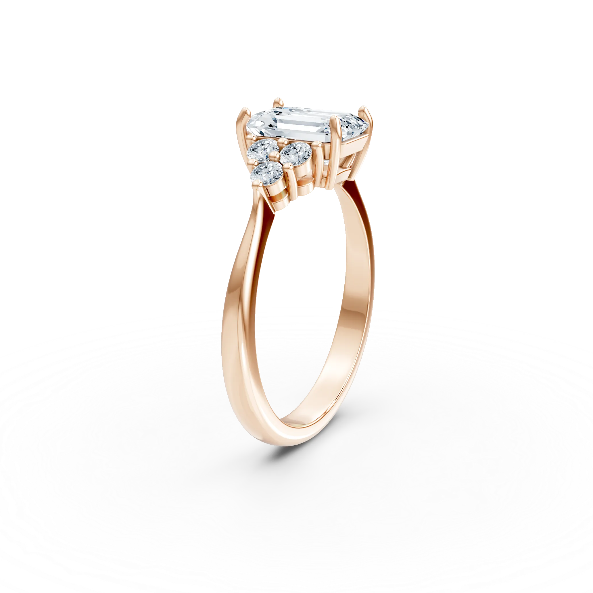 Der „Celestia“ Emerald Ring vereint zeitlose Eleganz mit höchster Handwerkskunst. Der Emerald Cut besticht durch seine klare, rechteckige Form, die Tiefe und Brillanz verleiht. Umgeben von funkelnden Brillanten, strahlt er pure Raffinesse aus – ein Symbol für Liebe und Beständigkeit. Perfekt als Verlobungsring oder als edles Geschenk für besondere Anlässe, verkörpert dieser Ring Luxus und Stil. Handgefertigt in 585er (14K) oder 750er (18K) Roségold, vereint er nachhaltige Materialien mit makellosem Design – ein Schmuckstück, das ein Leben lang begeistert.
