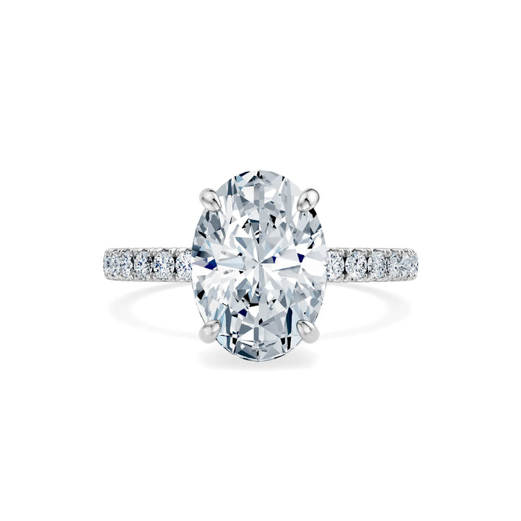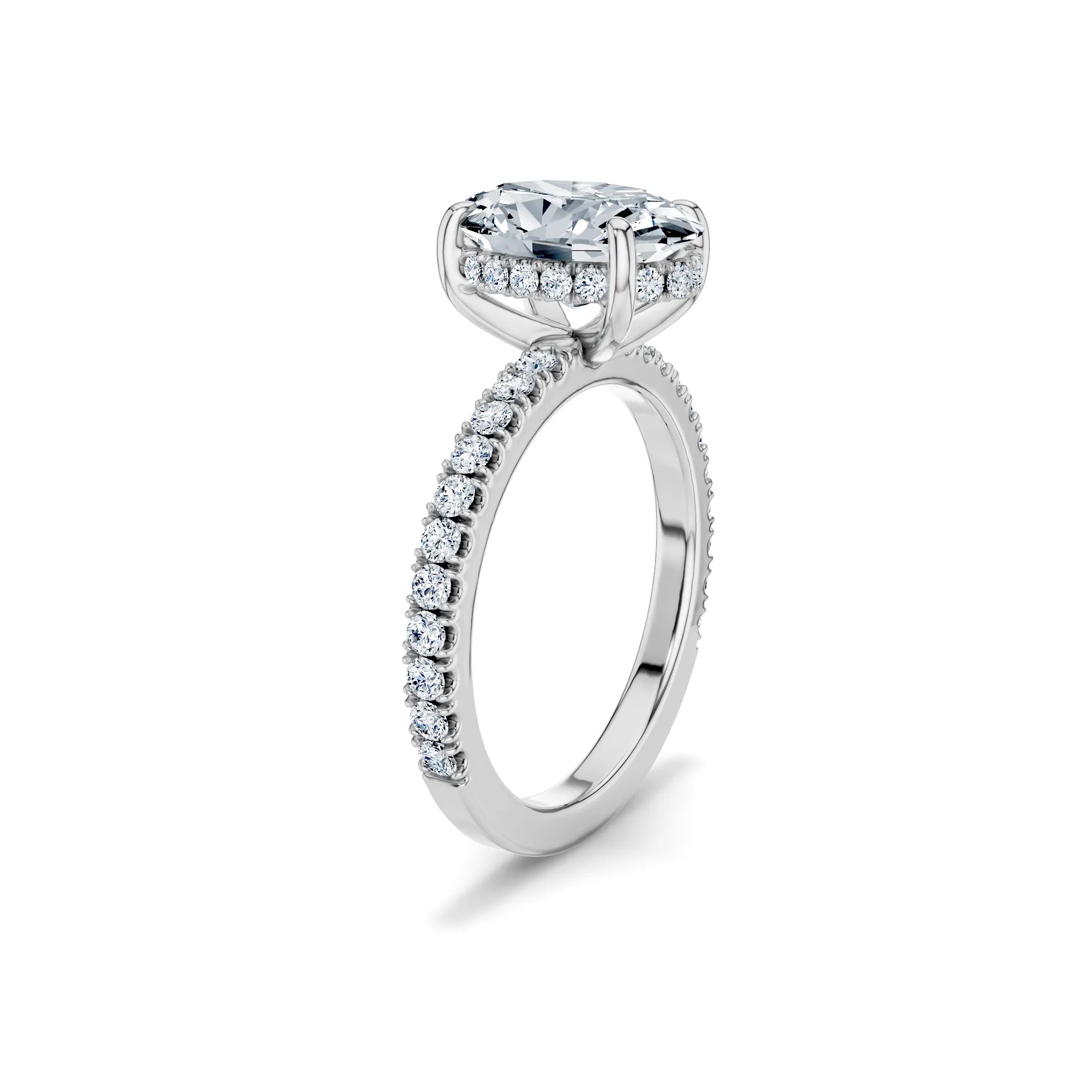 Zeitlose Eleganz und moderne Raffinesse vereinen sich im Classic Hidden Halo Pavé Verlobungsring. Der oval geschliffene Labordiamant steht im Mittelpunkt und wird von einem dezenten, versteckten Halo unter dem Stein umrahmt – ein verborgenes Detail mit strahlender Wirkung.
