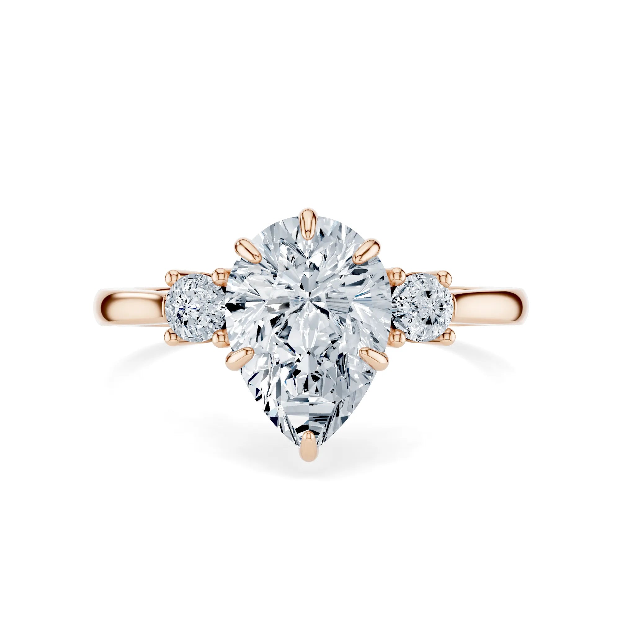 Der Pear Cut hat eine lange Geschichte, die bis ins 15. Jahrhundert zurückreicht, als er für europäische Königshäuser entworfen wurde. Seine Tropfenform steht für Anmut, Stil und Exklusivität – ein Symbol für Liebe und Beständigkeit. Der Diana Verlobungsring greift diese Tradition auf und vereint klassische Schönheit mit moderner Handwerkskunst. Der edle Pear Cut Lab Grown Diamant, flankiert von zwei funkelnden Brillanten, setzt ein klares Statement für Luxus und Eleganz. Die harmonische Form schmeichelt der Hand und verleiht dem Design eine außergewöhnliche Ausstrahlung.