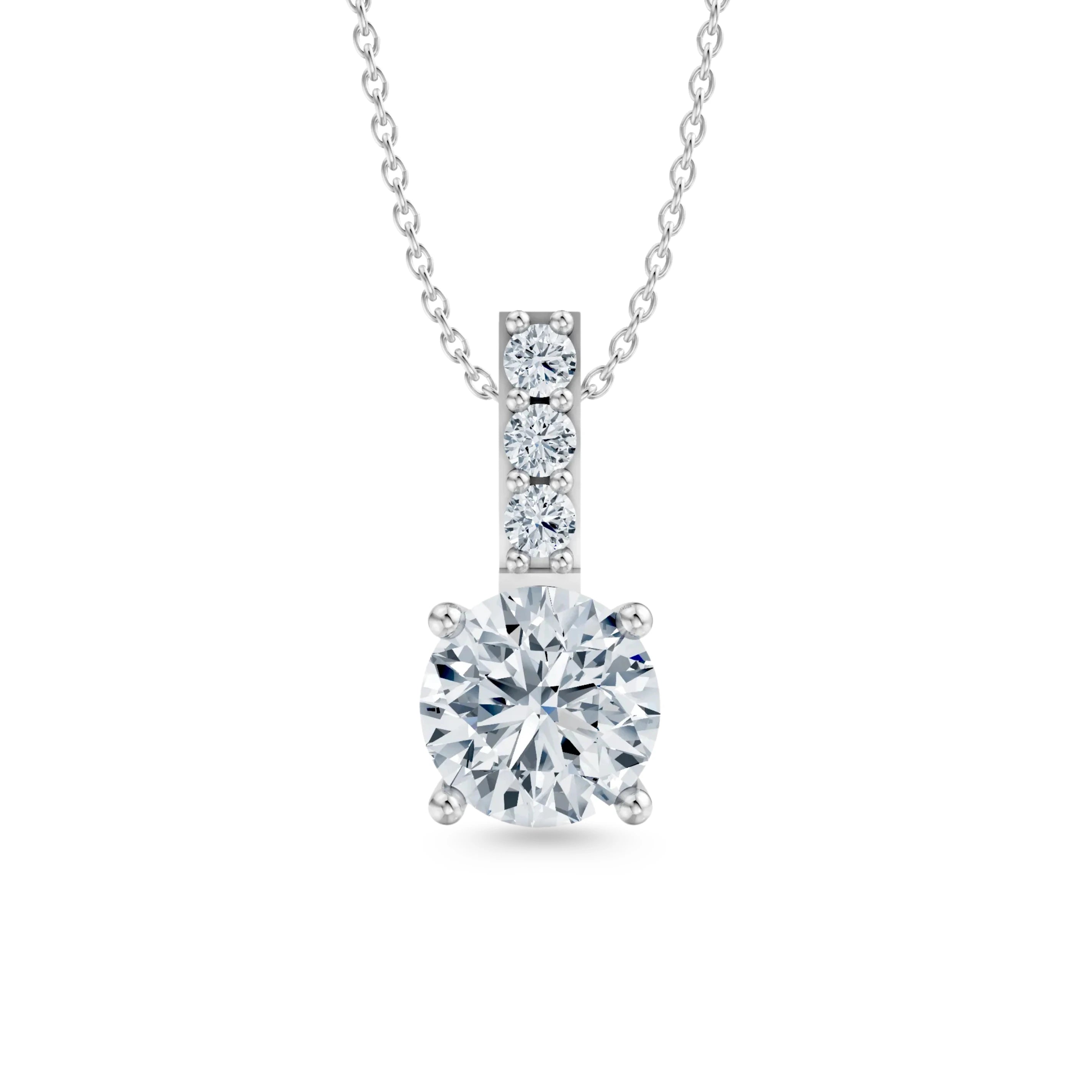 Die "Isaline" Halskette vereint klassischen Solitär-Stil mit modernem Design. Drei feine Labordiamanten bilden den eleganten Übergang zum zentralen Brillantschliff – eingefasst in warm glänzendes 14 Karat (585er) Weißgold. Die vertikale Anordnung sorgt für optische Länge und einen außergewöhnlich harmonischen Look.