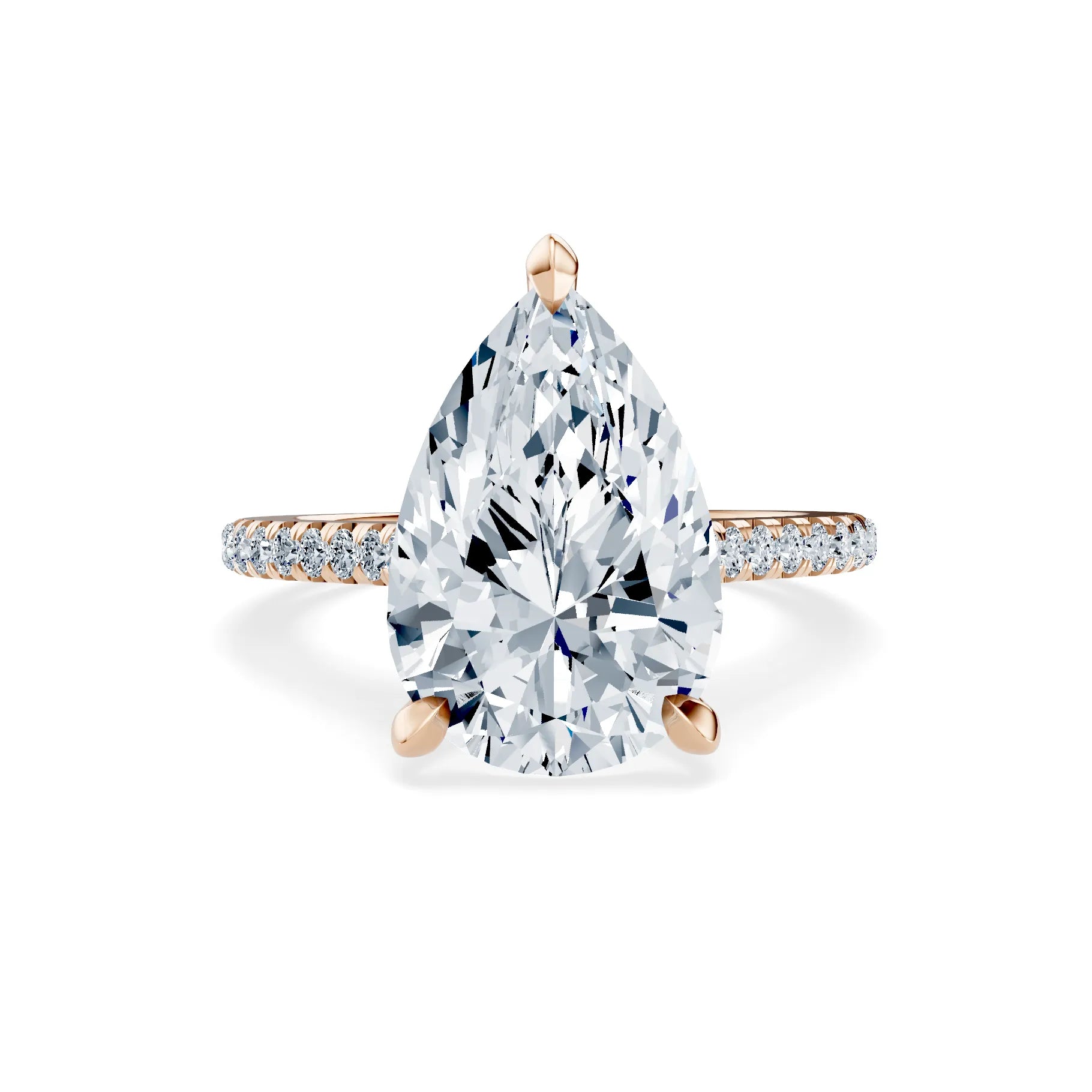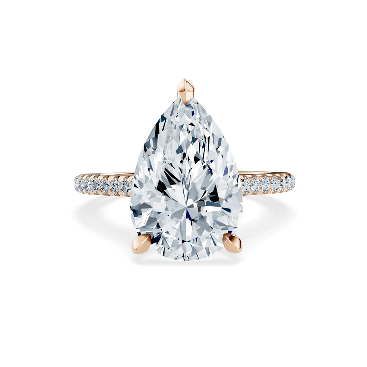 Die feine Pavé-Ringschiene aus 585er (14K) oder 750er (18K) Roségold ist mit funkelnden Akzentdiamanten besetzt, die das Licht in jeder Bewegung einfangen. Die Kombination aus der eleganten Tropfenform und der luxuriösen Goldlegierung macht diesen Ring zu einem wahren Statement-Stück – ideal für diejenigen, die sich mit nichts weniger als Perfektion zufriedengeben.