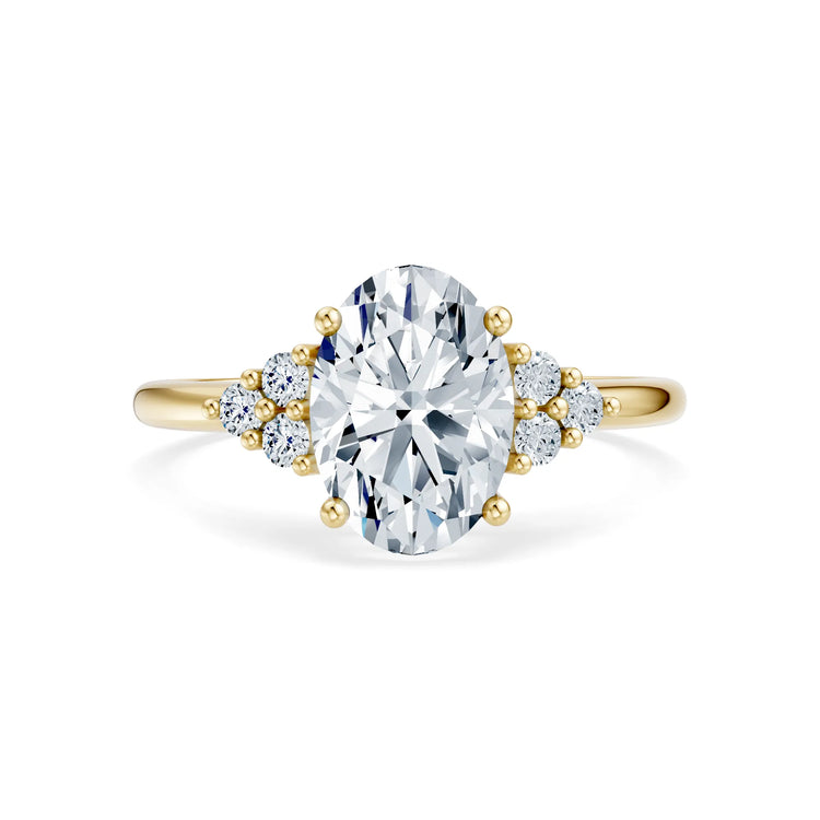 Ein Symbol für Ewigkeit, Liebe und unvergängliche Eleganz. Der Oval Trilogy Verlobungsring vereint klassische Raffinesse mit moderner Strahlkraft. Im Mittelpunkt steht ein oval geschliffener Labor-Diamant, der mit seiner einzigartigen Form das Licht auf unvergleichliche Weise reflektiert. Flankiert von funkelnden Diamant-Clustern, symbolisiert dieses Trilogie-Design die Vergangenheit, Gegenwart und Zukunft einer tiefen Verbindung.