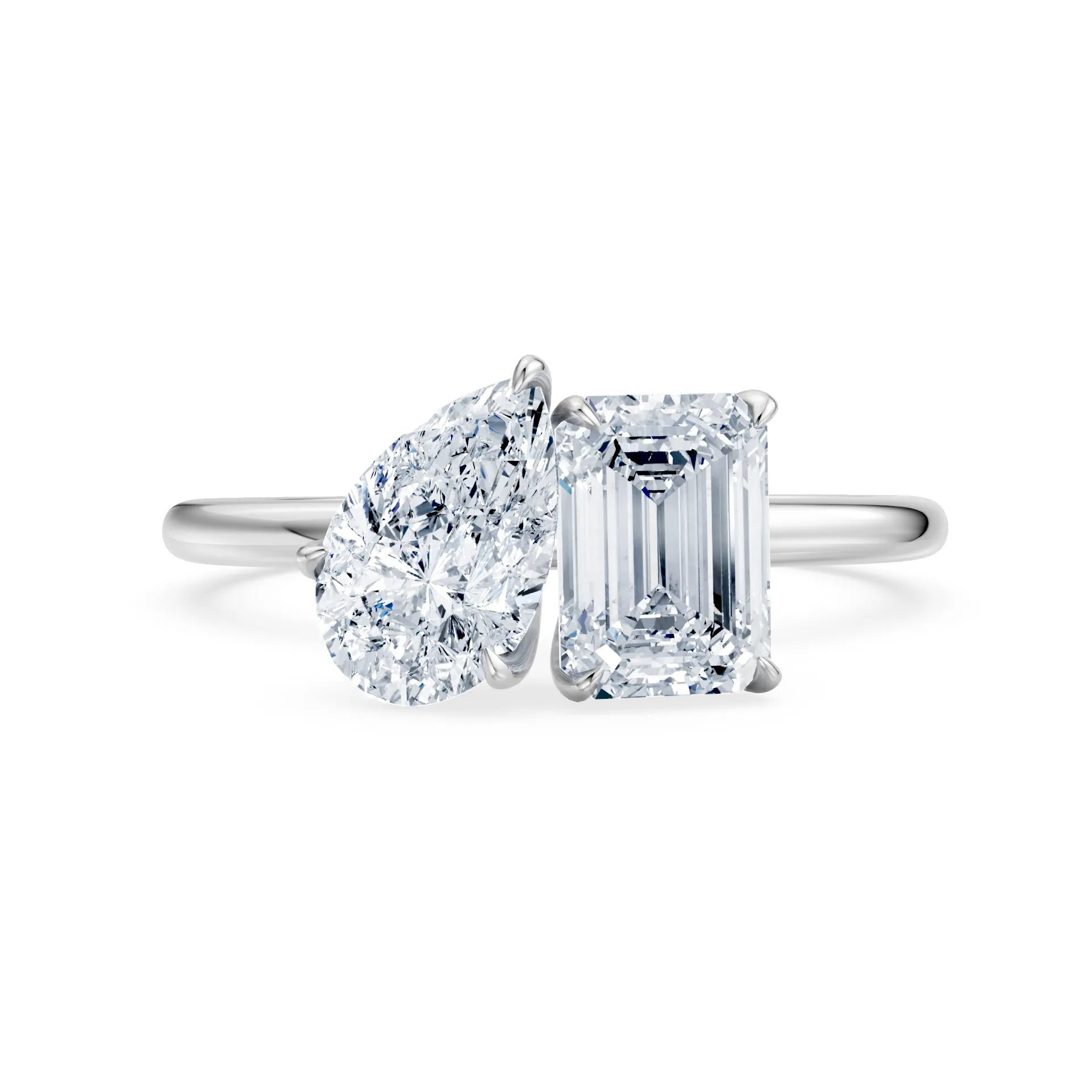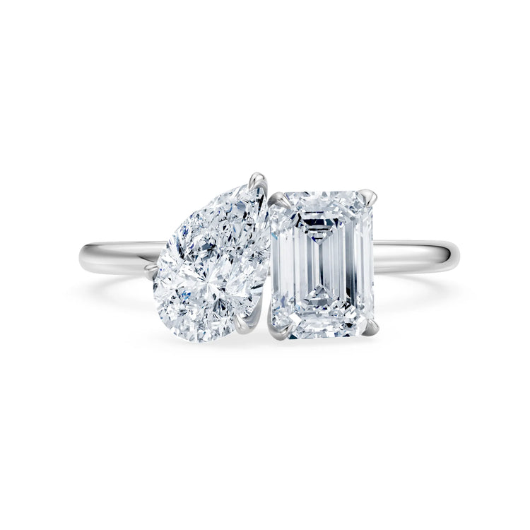 Der Toi et Moi Ring symbolisiert vollkommene Harmonie – zwei Diamanten, die sich in perfekter Balance begegnen. Der Emerald Cut steht für Klarheit und Stärke, während der Pear Cut Emotion und Anmut verkörpert. Gemeinsam erschaffen sie ein faszinierendes Zusammenspiel aus Licht und Form – modern interpretiert, zeitlos und voller Ausdruckskraft.